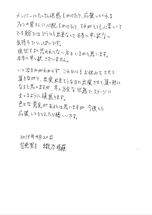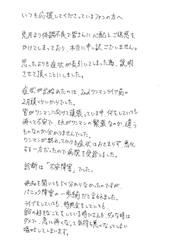 <本人より直筆にてコメント>