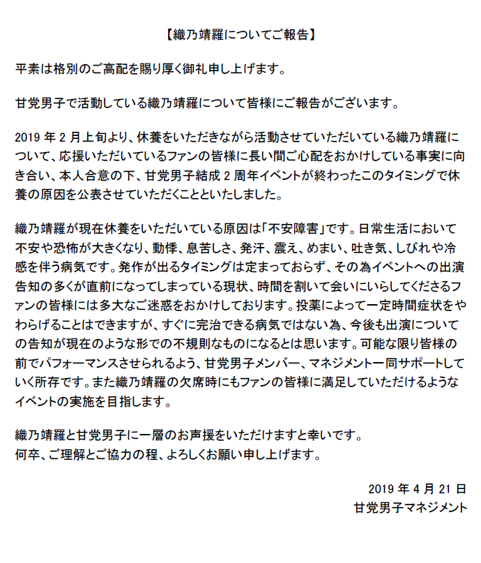 【織乃靖羅についてご報告】