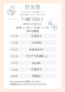 ※ライブ終了後、特典会となります。※時間は前後する場合がございます。